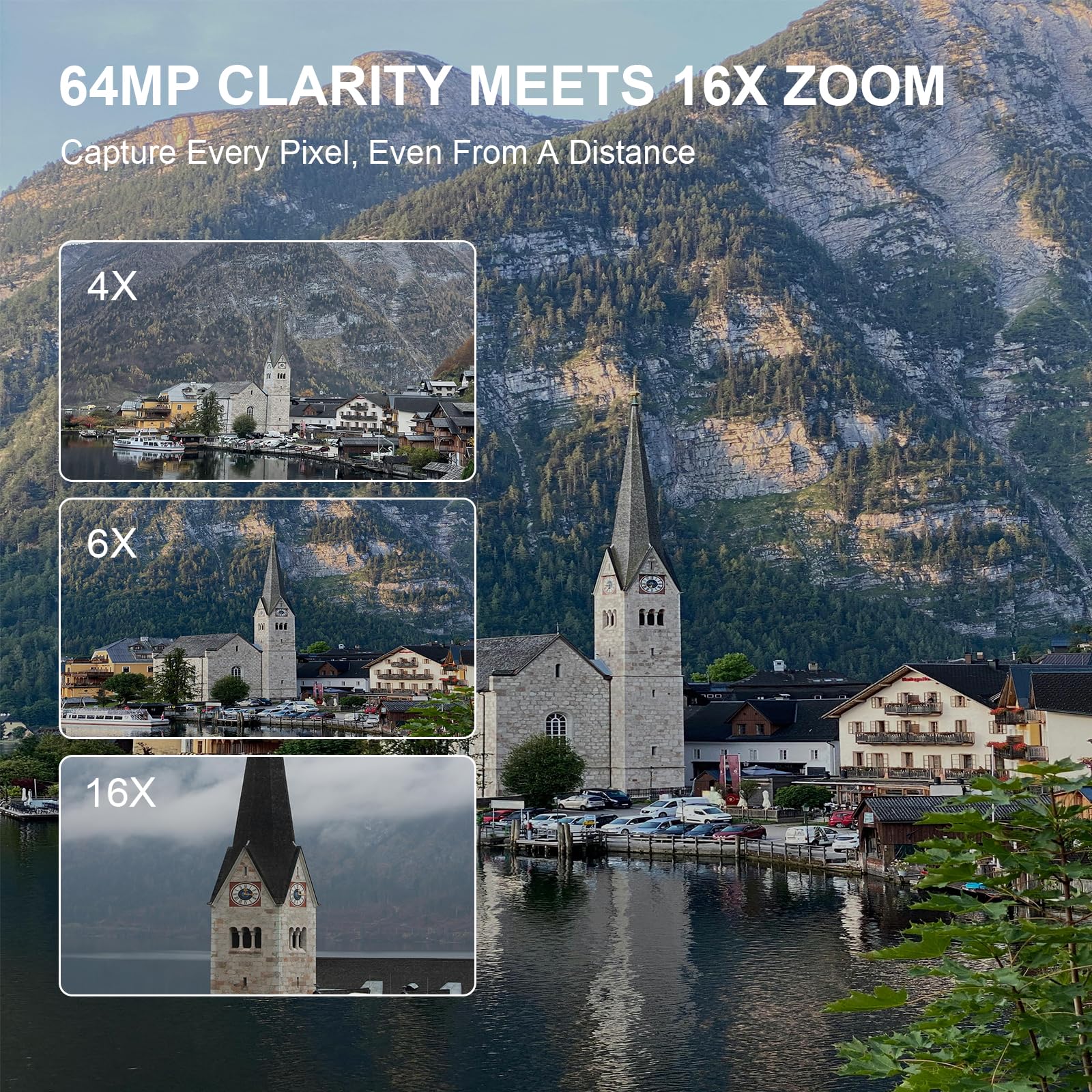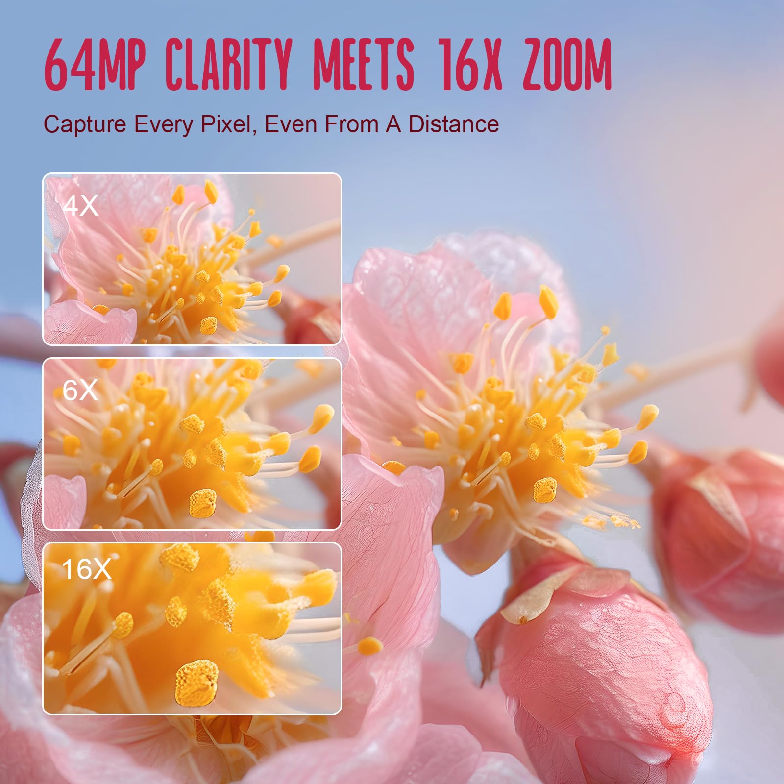 - 【64MP Digital Camera with Dual Lens for Photography】 Capture stunning details with this 64MP digital camera, featuring a Wide-Angle Lens for landscapes, a Macro Lens for close-ups, and 16X digital zoom.