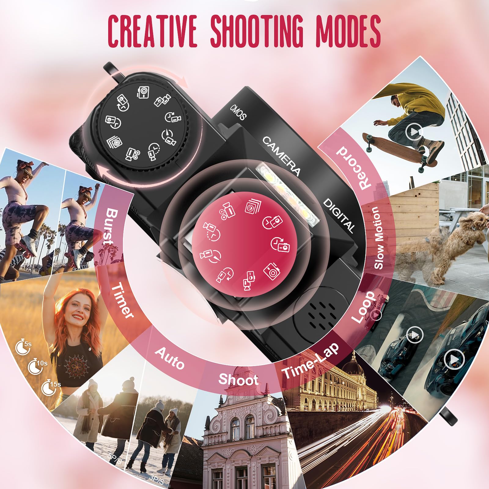 - 【Affordable & Abundant Package for Gift-Giving】This cheap digital camera offers a 64GB memory card, lens hood, high-fidelity microphone, camera strap, and two rechargeable batteries for extended shooting sessions. Whether for birthdays, holidays, or special occasions, this compact digital camera is the perfect gift to inspire creativity and capture memories.